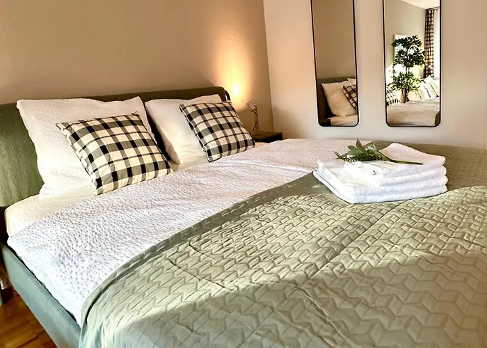 El New Studio With Sunny Terrace & Air Condition dispone de facilidades de autoservicio, como una cocina bien equipada y una zona de comedor y un comedor al aire libre para disfrutar de sus comidas. La estación de autobuses Messe/Hallenstadion está a unos 200 metros.